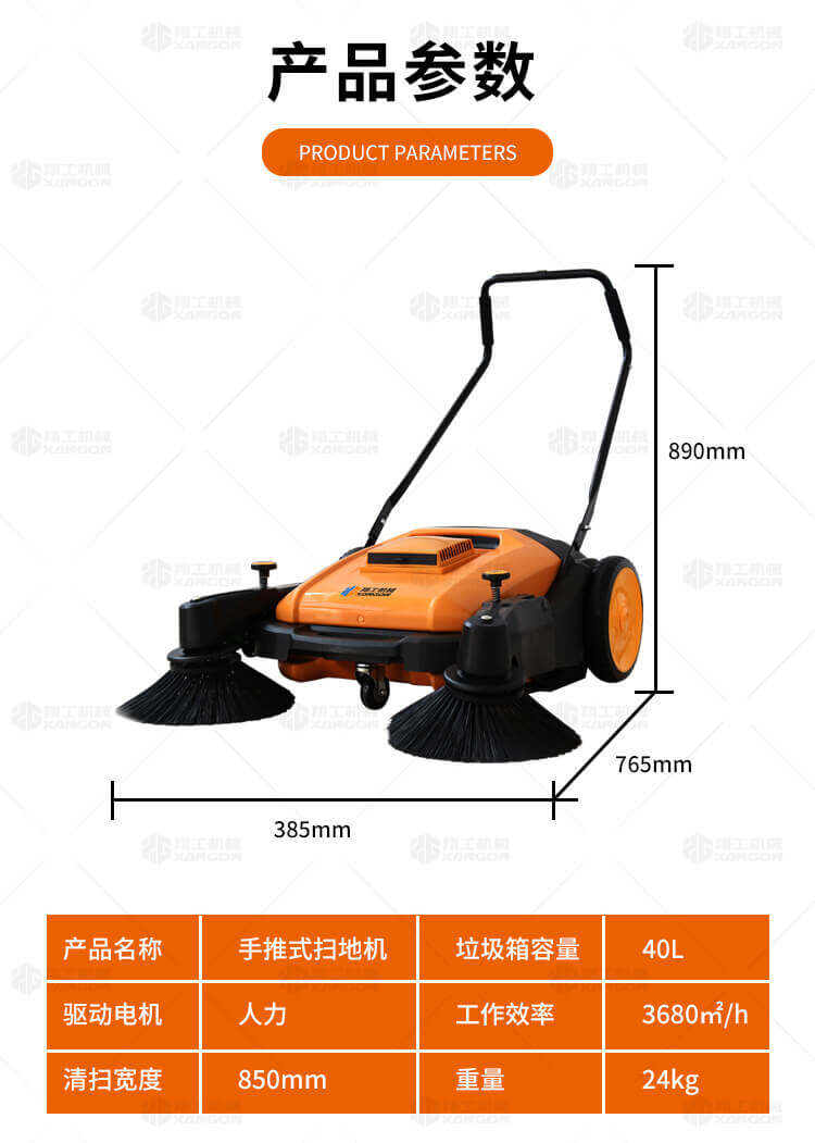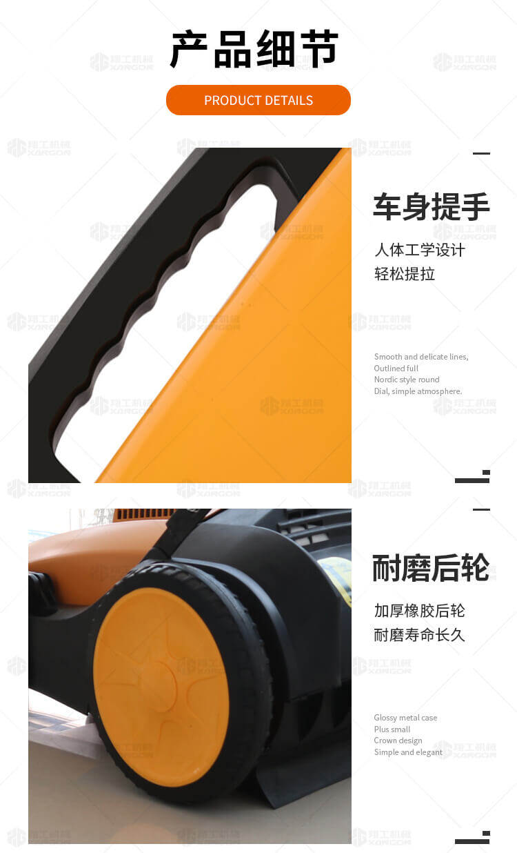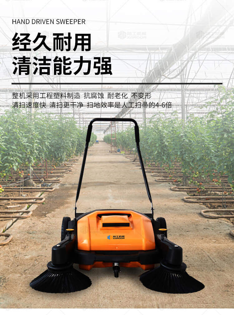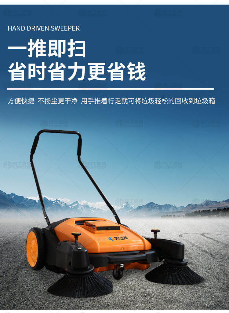 手推式掃地機(jī)能清潔房屋周邊范圍:包括小路,公路,車道和院子,能比用普通的掃把和簸箕節(jié)省5倍的時(shí)間,清掃時(shí)垃圾被迅速的收集到塵箱,簡(jiǎn)單、快速、干凈。