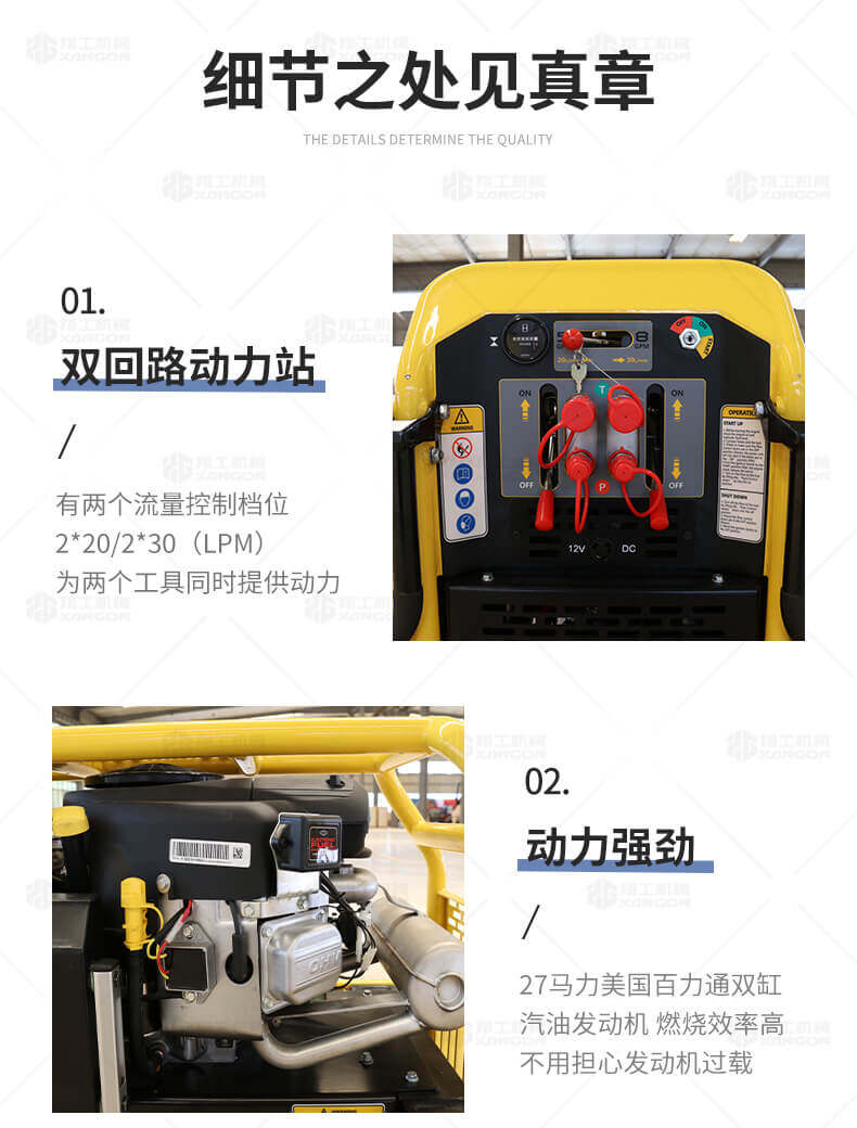 1.雙回路動(dòng)力站,有兩個(gè)流量控制檔位2*20/2*30(Lpm),為兩個(gè)工具同時(shí)提供動(dòng)力;
