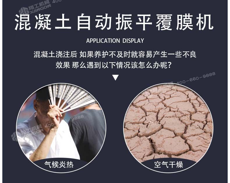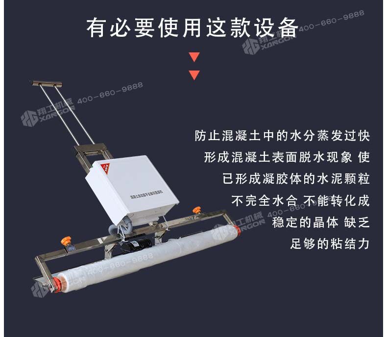 混凝土澆注后,如果養(yǎng)護(hù)不及時(shí)就容易產(chǎn)生一些不良效果,如氣候炎熱、空氣干燥等情況,我們就有必要使用這款設(shè)備,防止混凝土中的水分蒸發(fā)過快,形成混凝土表面脫水現(xiàn)象,使已形成凝膠體的水泥顆粒不完全水合,不能轉(zhuǎn)化成穩(wěn)定的晶體,缺乏足夠的粘結(jié)力。因此,混凝土表面會(huì)出現(xiàn)剝落或粉粒脫落。另外,當(dāng)混凝土強(qiáng)度不夠時(shí),過早蒸發(fā)水分會(huì)產(chǎn)生較大的收縮變形和干縮裂縫。因此,混凝土澆筑后的初期養(yǎng)護(hù)非常重要,終凝后應(yīng)立即進(jìn)行養(yǎng)護(hù)。